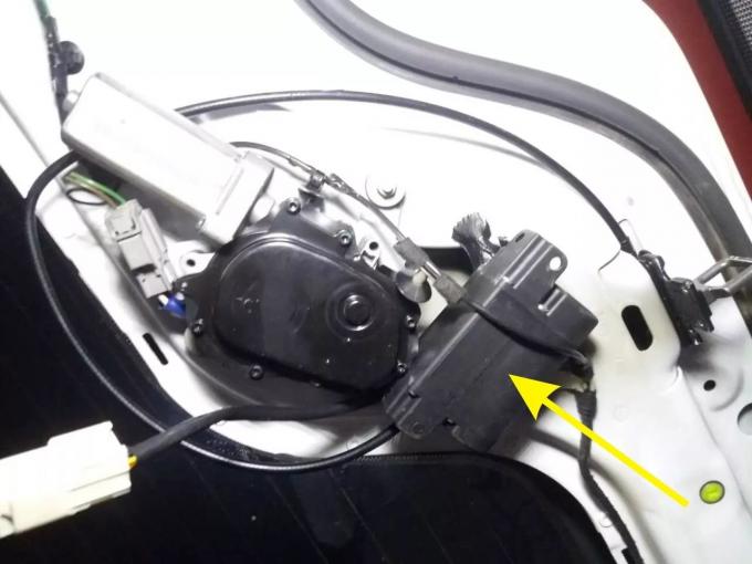 12. ถอดชุดตัดเย็บที่ครึ่งบนของประตูและพบซ็อกเก็ตสองสายที่ถูกขับออกจากตัวขับหลักการเชื่อมต่อตามแผนผังด้านล่าง