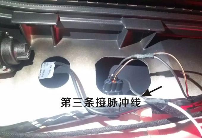 14. หลังจากที่รถยนต์เดิมเปิดขึ้นที่นั่งสายหลักสามประตูจะเชื่อมต่อกับสายชีพจรของ OBD (ที่นั่งอยู่ในฝาครอบประตูด้านหลัง)